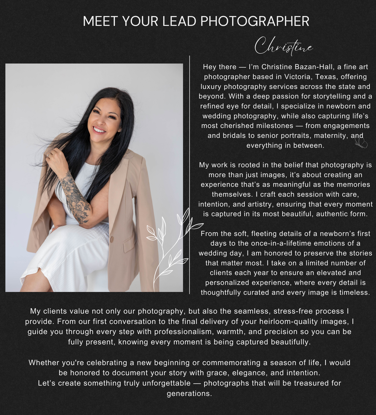 I’m so excited to connect with you and help create timeless, beautiful images you'll cherish for years to come.